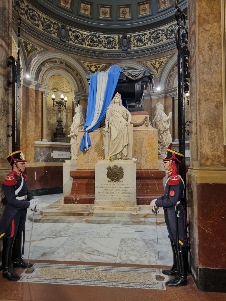 So many questions! Vatican City has its Swiss Guard, but what other countries have armed soldiers watching over the remains of dead heroes in their cathedrals? What are they guarding against? Why do they need rifles? And while it is hard to imagine a band of sarcophagus robbers coming to whisk away the General’s remains, are the rifles loaded, just in case? Do they stay there all night? Or does the General spend the wee small hours attended only by God and the Liberated Ladies of Argentina, Peru and Chile?