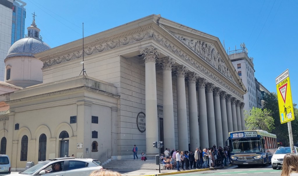 Built over the course of a century and officially instituted in 1852, Buenos Aires Cathedral (where the current pope served as Archbishop before moving to the Vatican in 2013), boasts a classical Greek-style portico, which Wikipedia informs me is a replica of the facade of Paris’s Palais Bourbon. The twelve pillars out front are meant to represent the twelve Apostles, and the frieze on the pediment above depicts Joseph’s reunion with his father and brothers. This scene was deliberately chosen to symbolize the unity of the Argentine nation in the aftermath of several unpleasant civil wars, apparently. (Absolutely everything is political here.)